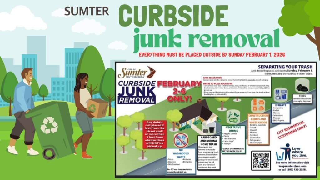 Curbside junk removal Everything must be placed outside by Sunday February 1, 2026